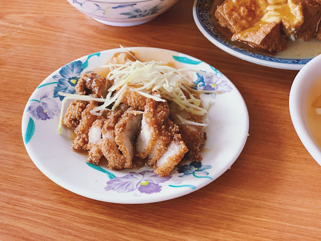 紅燒肉則炸得酥香,外皮焦脆,由於入炸前便醃得入味,以至於炸起來更是鹹香四溢,乃配粥之王道,而且每回去吃,總指定非要三層肉的部位才行。