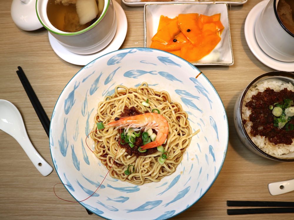 傳承百年的肉燥香,搭配手工意麵,來尾鮮蝦,撒點蔥花,就是迷人的台南小吃料理。