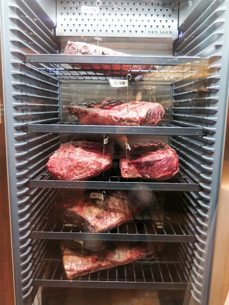 冰櫃裡展示著這家供應的各部位頂級牛排