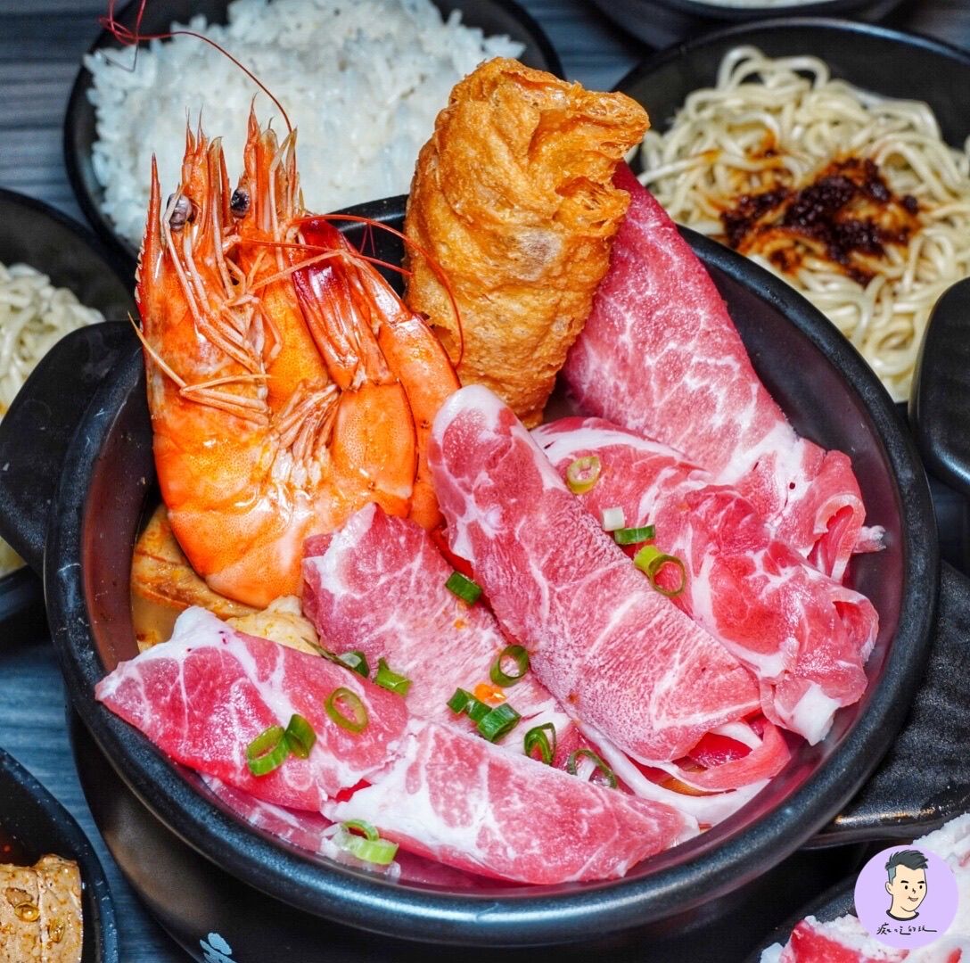 每鍋再出鍋之前都會先煮過,所以上鍋後就可以馬上食用超貼心快速的,上圖是泰式酸辣海鮮鍋,附有花枝丸/鮮蝦/豆腐,每種湯頭配料都不一樣。