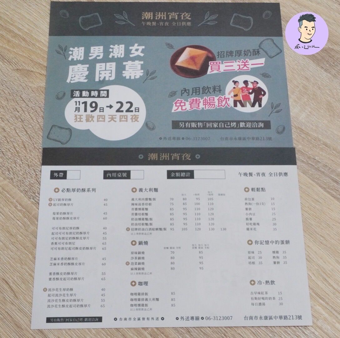 台南新店報報🥳🥳 台南又多一間好吃的宵夜店『潮洲宵夜』必吃招牌的「奶酥厚片」超邪惡美味爆好吃,開幕首四日還有買三送一及飲料免費暢飲活動,營業時間超長從早開到晚,加上餐點很平價,絕對是台南宵夜新去處啊,