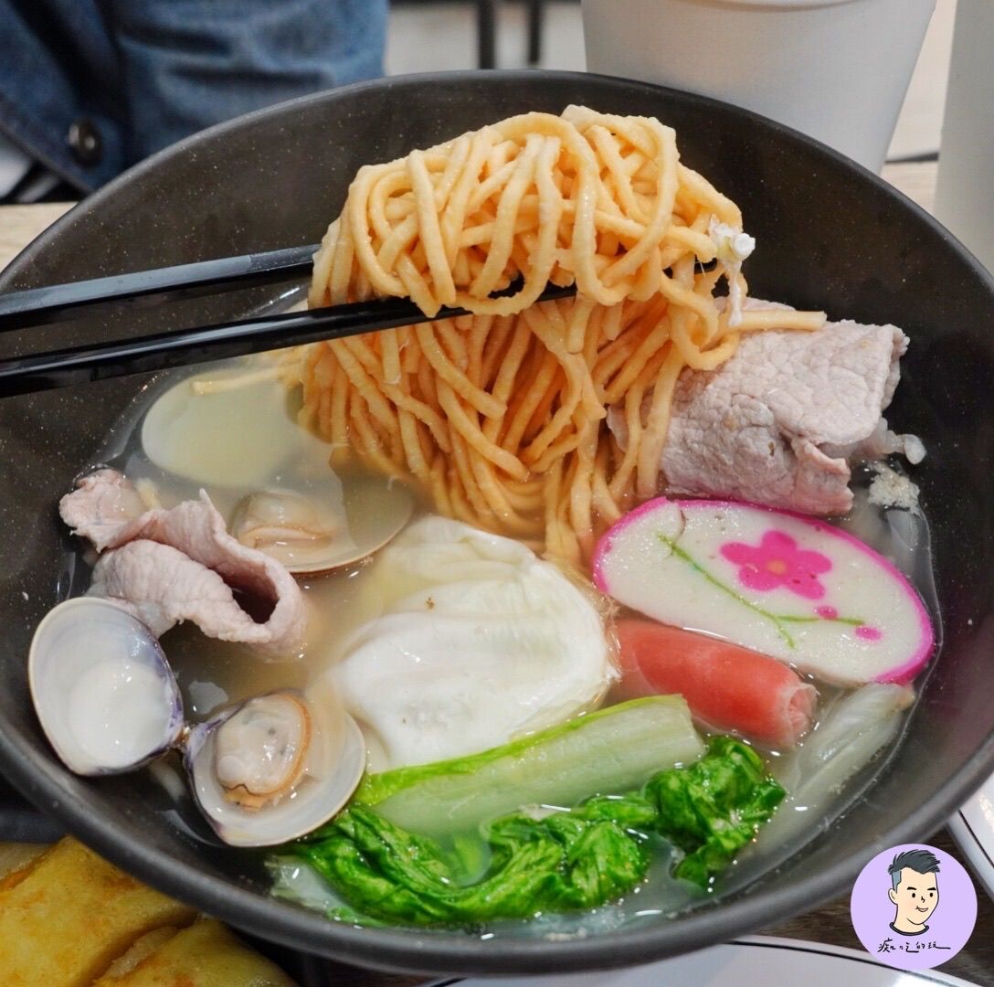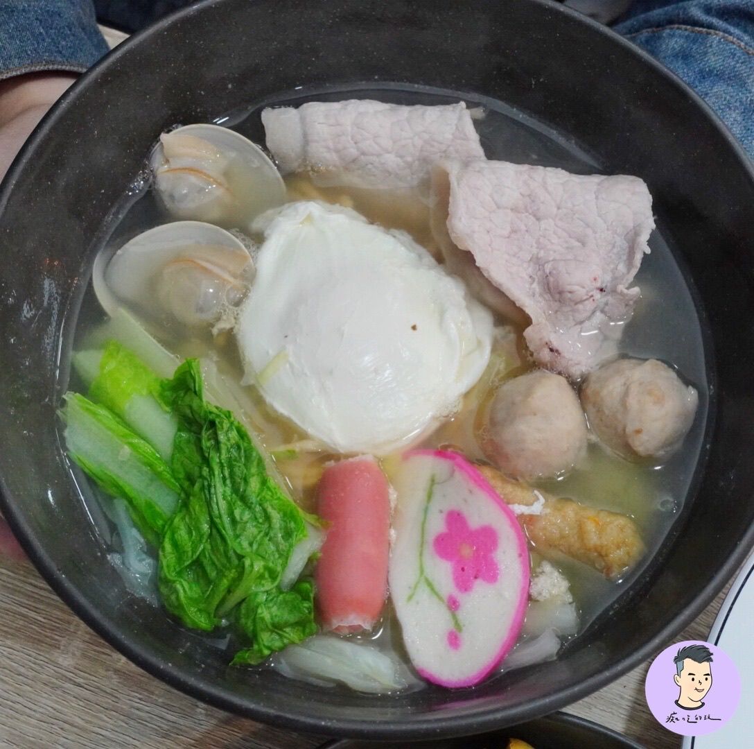 鍋燒意麵料給的好多,有青菜、蛤蜊、肉片、火鍋料、貢丸跟一顆蛋,而且咖哩飯/義大利麵/鍋燒這些通通都還有附飲料,很划算!!