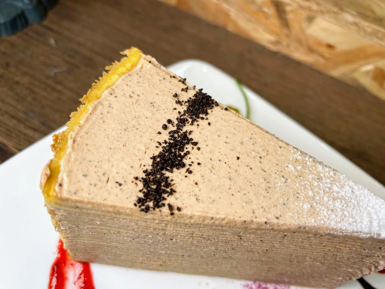 我不得說他們家的千層都非常的好看,就是那種不浮誇但卻帶有設計感的美。根據老闆說,這個是原味千層然後中間加入特製芝麻油製作的芝麻香緹,上面再撒上黑白芝麻,那股濃濃的芝麻香絕對會在你嘴裡爆開,看來蓋瑞哥只能下次有機會再來試試這個厲害的千層了(拭淚)。