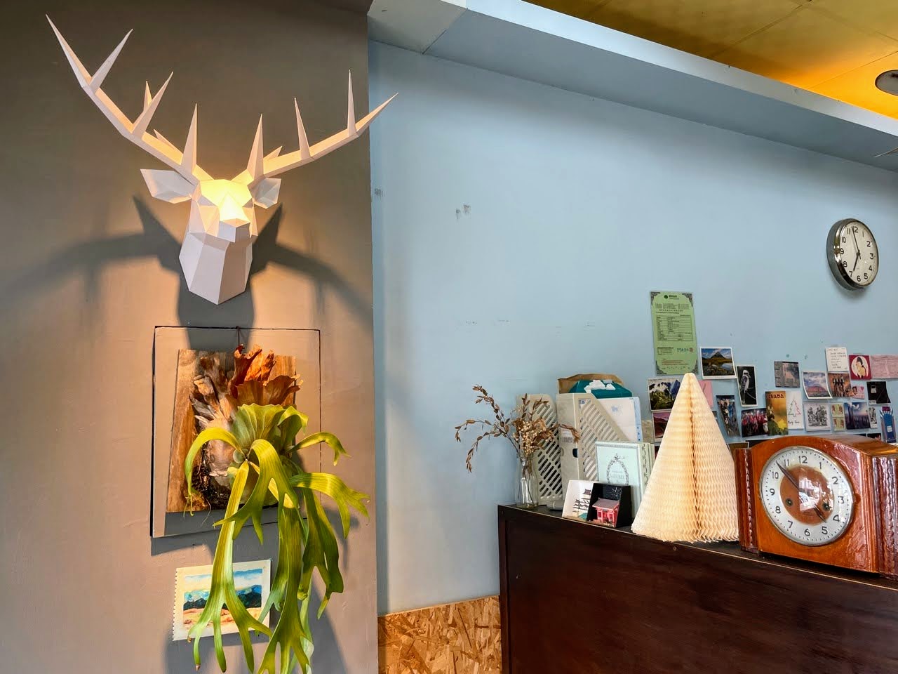 店內裝潢擺飾都是老闆在這邊開業三年多自己親手佈置的,所以特別有溫度。看看那個跟巴斯光年在樹下聊天的胡迪,還有紙製的麋鹿頭以及經典不敗的野原一家,是不是很棒!