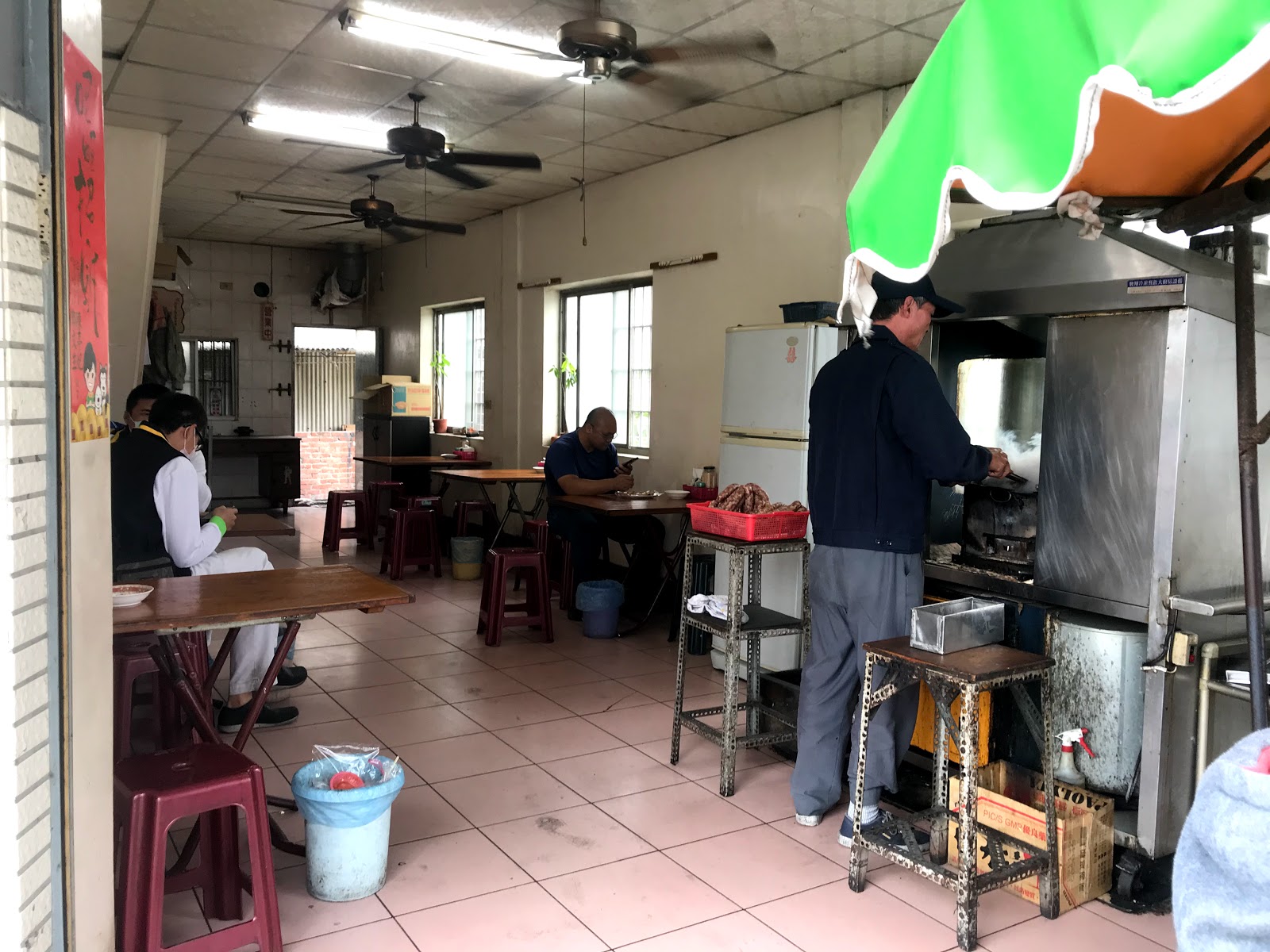 一停好車走到店門口,已經是大排長的狀態,店門口停車一輛像三輪車的攤子跟招牌上的意象概念是一樣的,這邊不管是內用或外帶都要先排隊點餐。