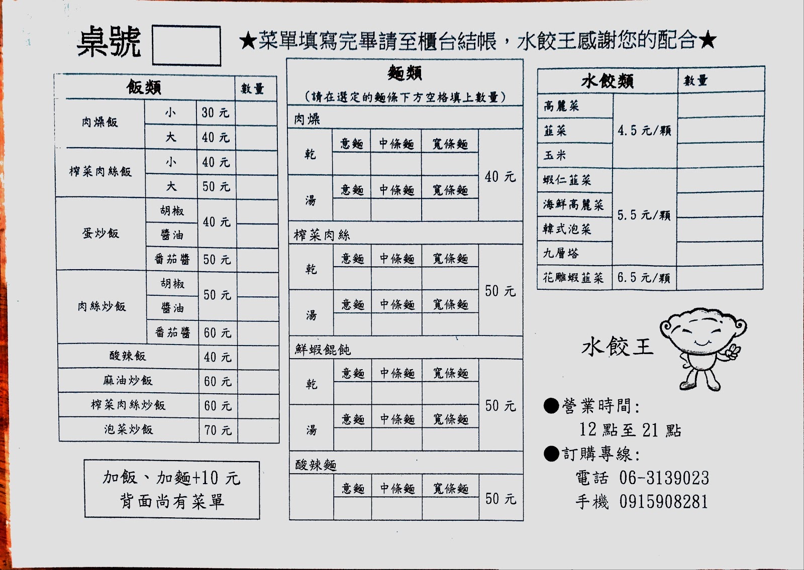 如果你要點湯類或是湯餃類就要看下面這一張藍色的菜單