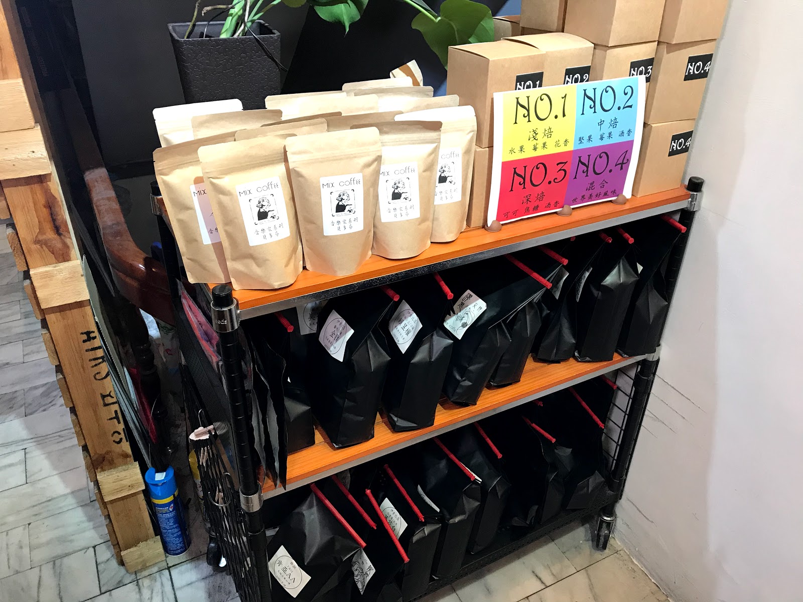 吧台上擺放各種單品豆跟Mix Coffee的獨家配方豆