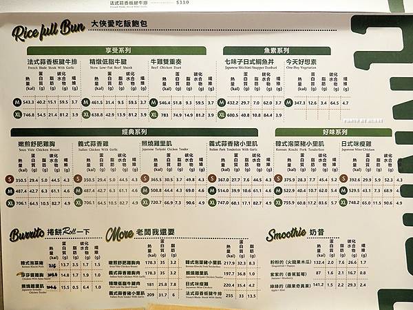 各個餐盒營養熱量標示一目了然,