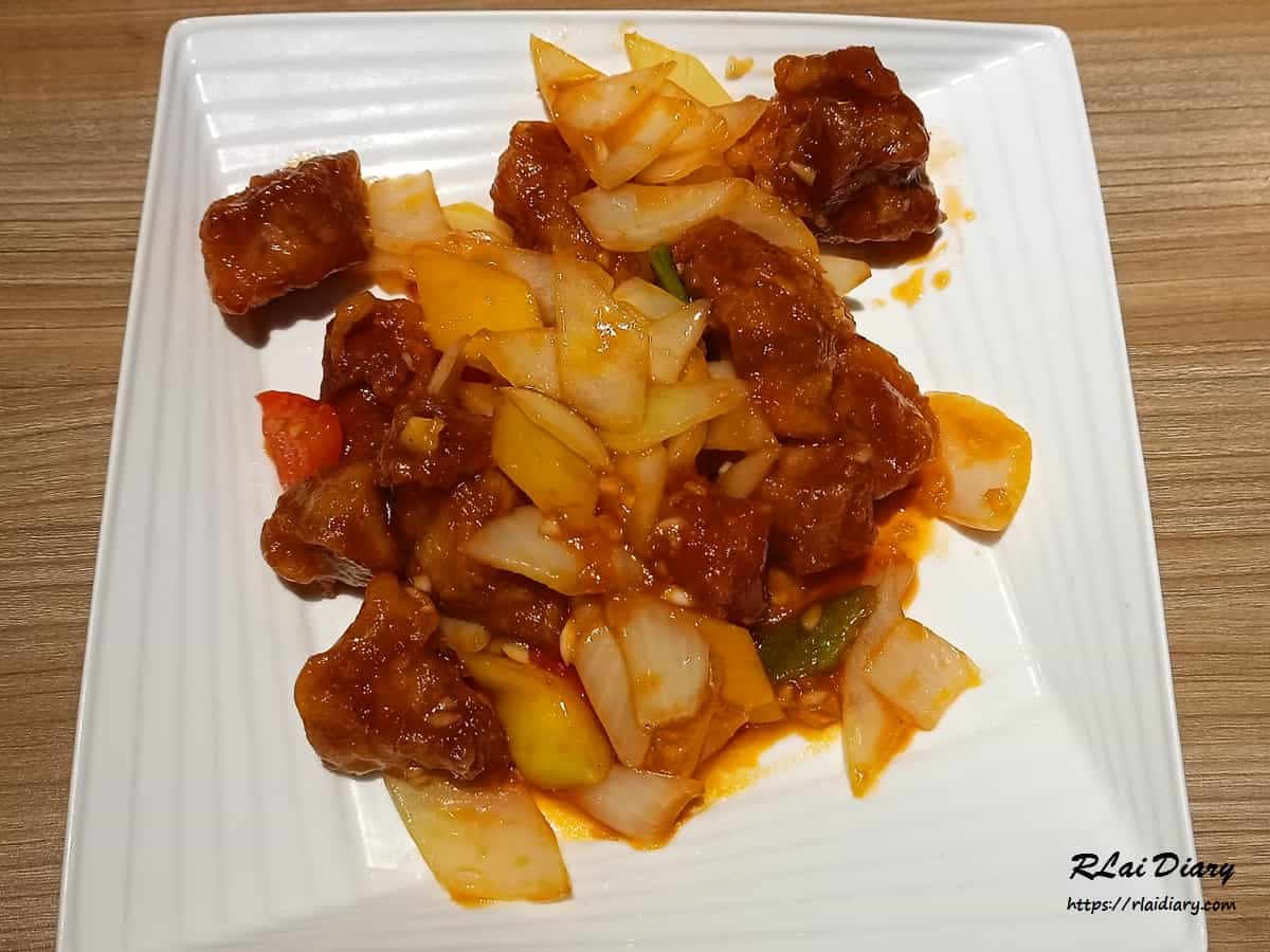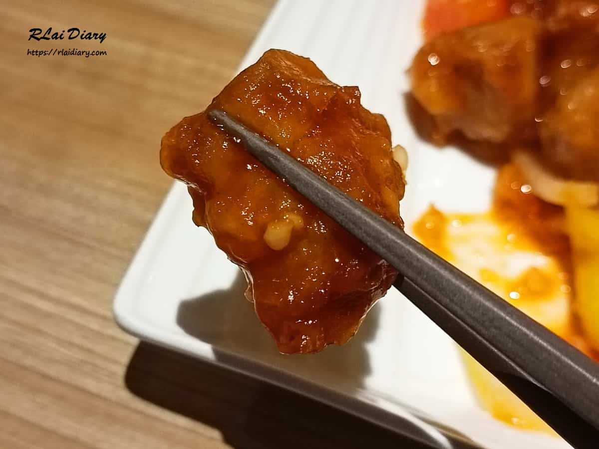 軟嫩的梅花肉裹著特調的酸甜醬汁
