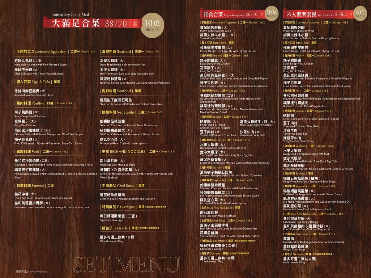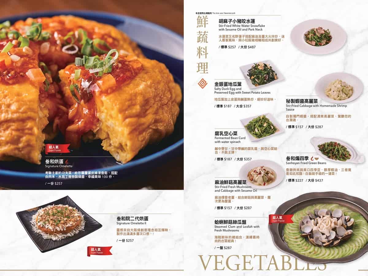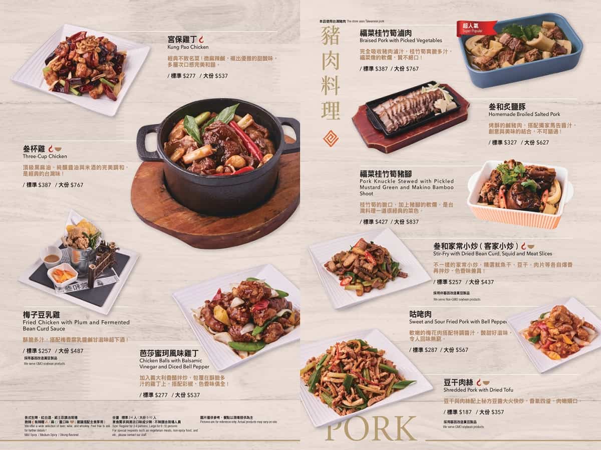 叁和院 台灣風格飲食 桃園華泰店 菜單