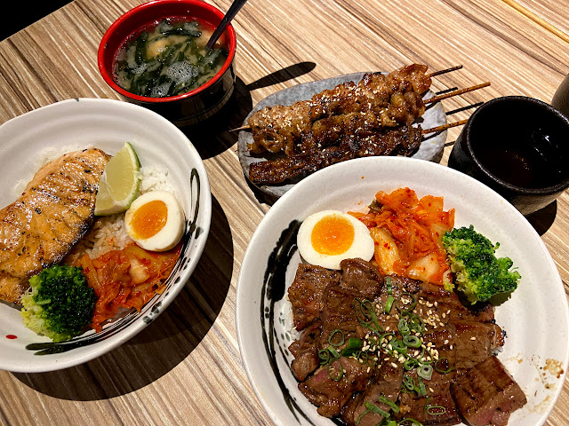 的表現也不錯,覺得它的焦香味比起牛肉的更吸引人,也因為採用雞腿的關係,吃起來還有咬勁但仍非常好咬,習慣感受醬香味的,可以推薦點他們點香烤雞腿丼,搭配白飯也非常搭。