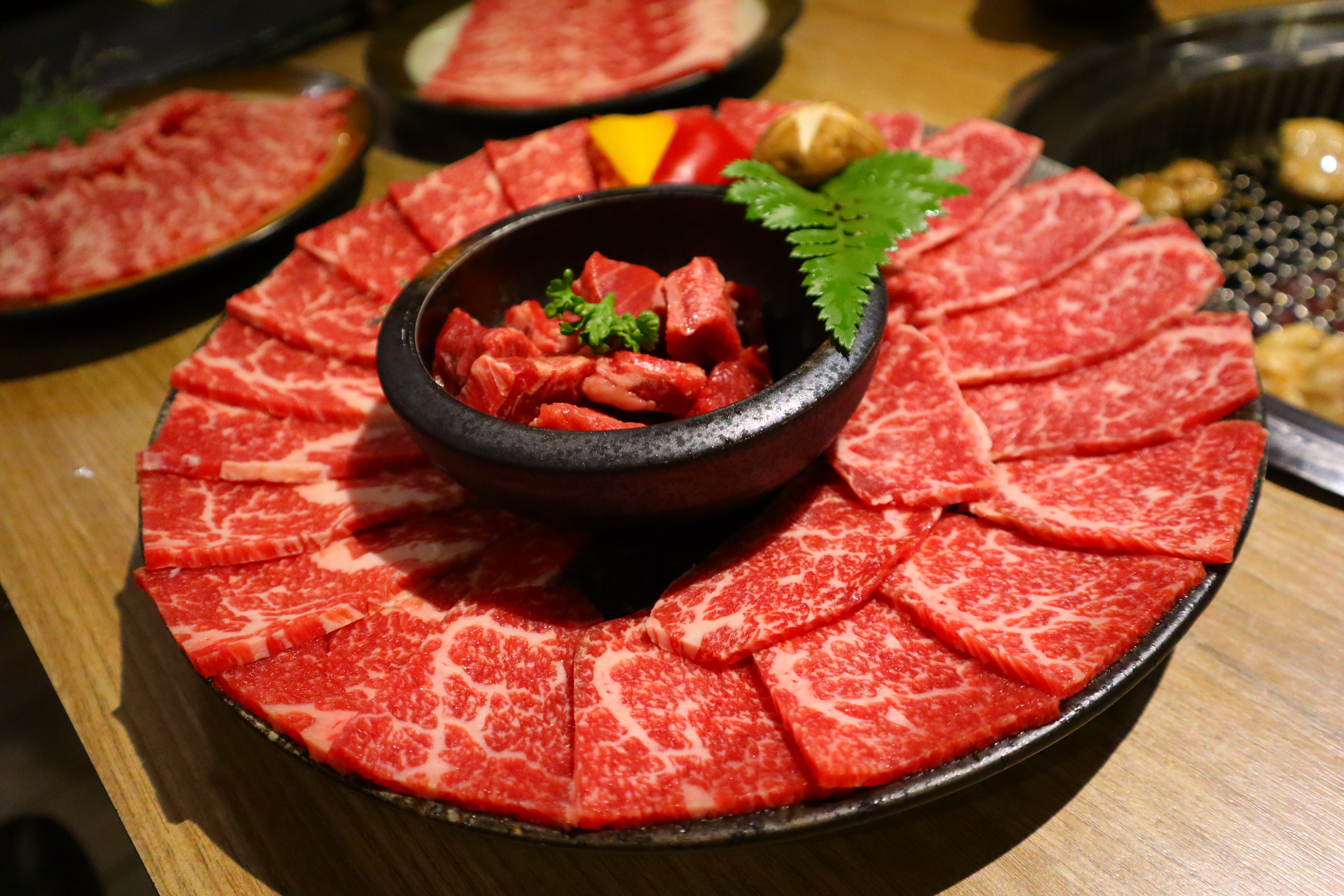 這盤裡面應該是安格斯牛肋條、特選M9澳洲和牛、極上安格斯牛小排。