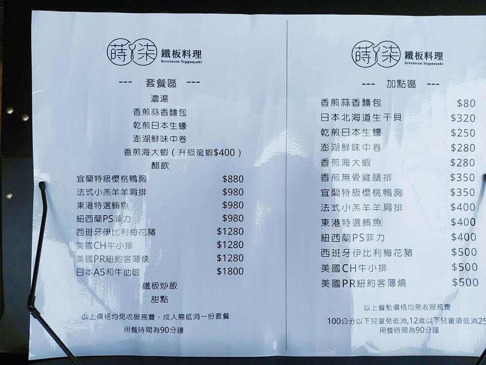 蒔柒鐵板料理 菜單&消費方式