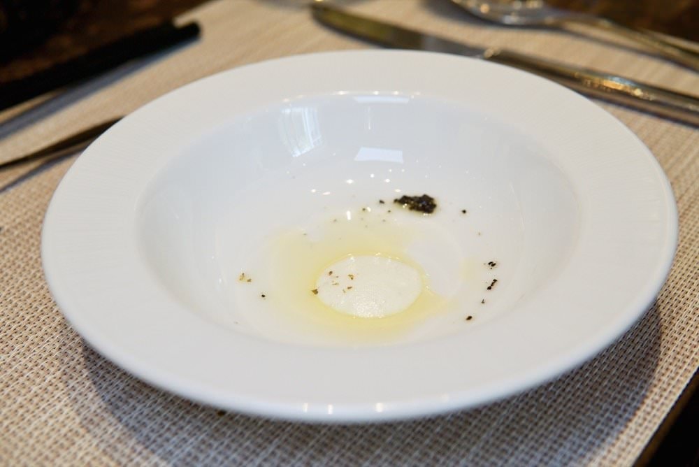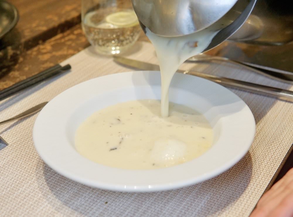 ▼今天主廚例湯有兩種,我們剛好兩個套餐個點一種,菌菇濃湯香氣十足,加湯後底下的奶泡浮上水面多了一份香濃味,雖說是濃湯但竟還帶點清爽感,鹹淡適中非常好喝!