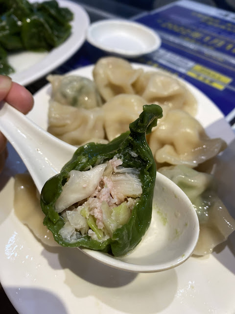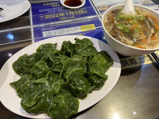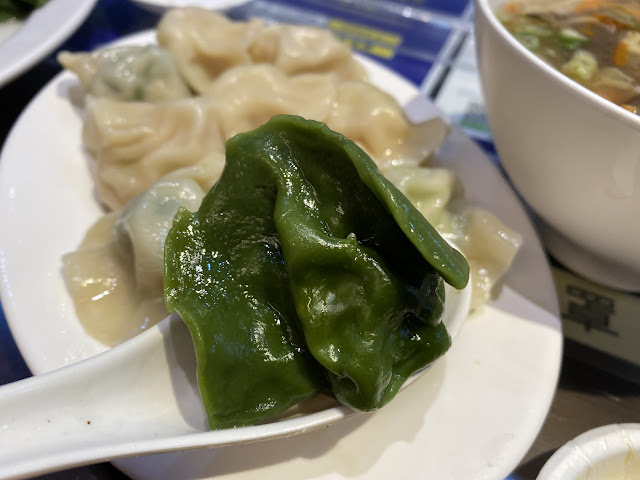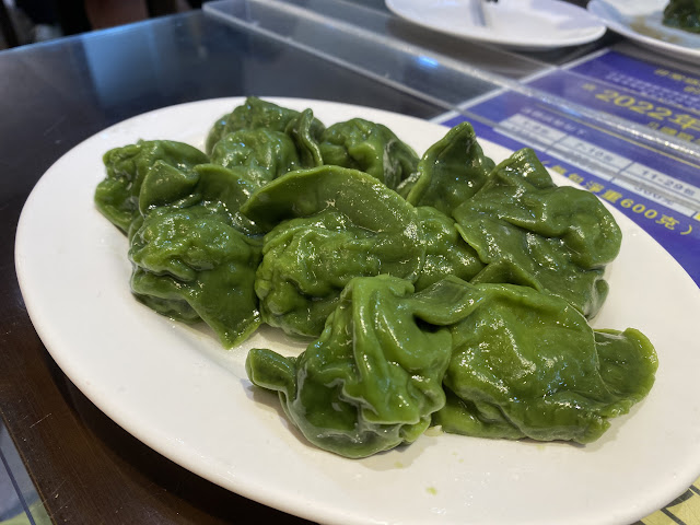 這裡最招牌的口味就是干貝水餃,那綠油油的餃子皮,會讓人一看就難忘,會呈現綠色的主因是製作過程中加入了綠藻,這也讓餃子皮多了一些不一樣的味道,吃起來很特別。