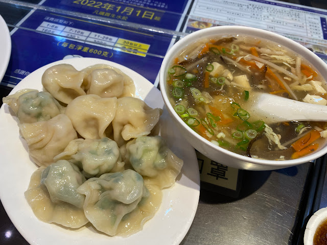 因為這裡的人流量很多,餃子都是不停地下鍋,所以上菜的速度非常快,才剛剛舀完醬料,所點的水餃和湯品都上桌了。