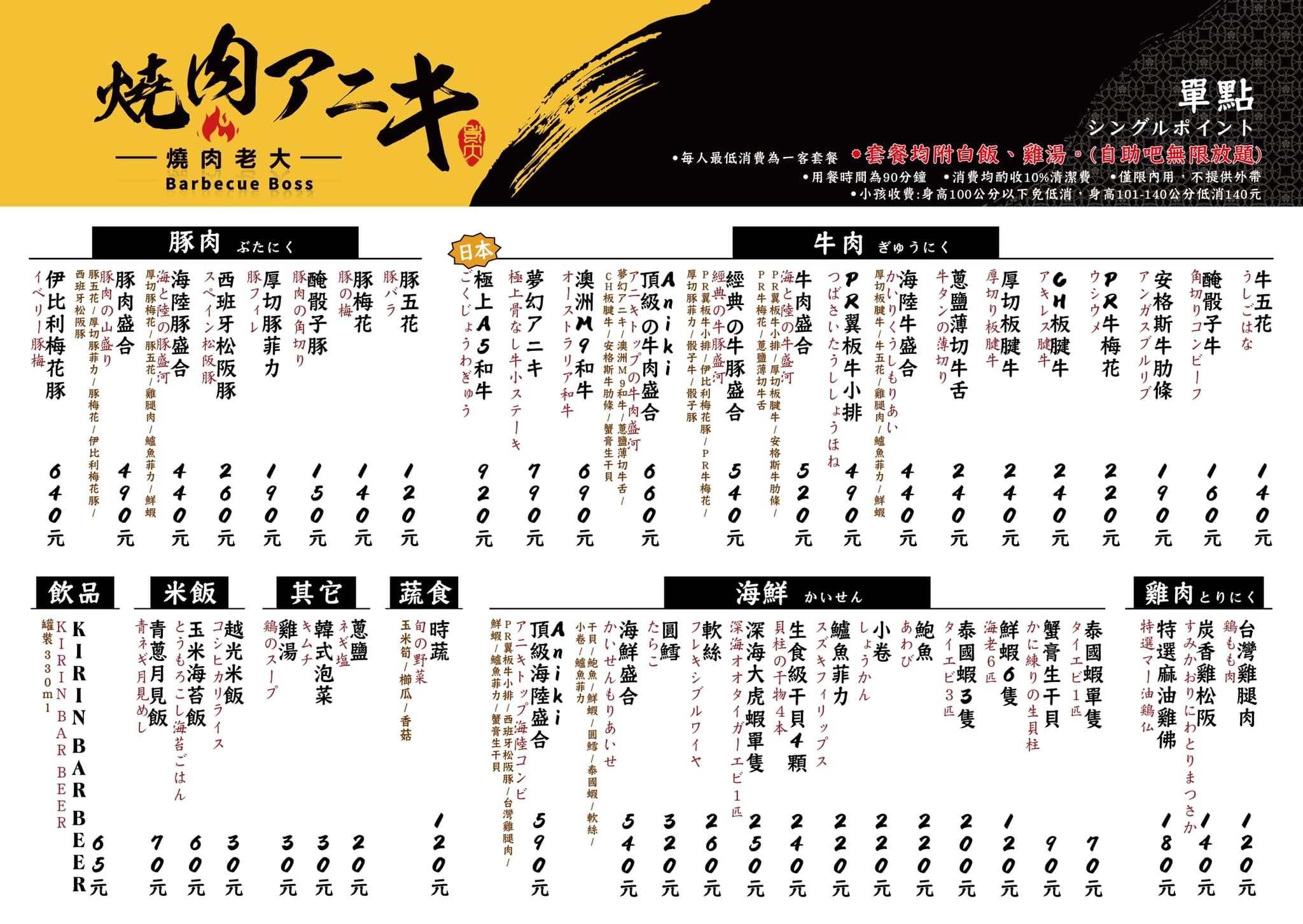 小蒙牛旗下的最新燒肉-燒肉老大アニキ,主打一個人也可以大口吃肉、豐富生菜自助吧以及飲料無限暢飲。