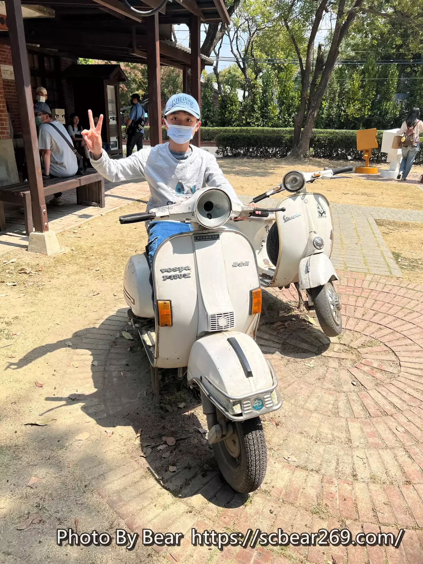 餐廳前還有可愛的糖怪公仔裝飾和偉士牌摩托車