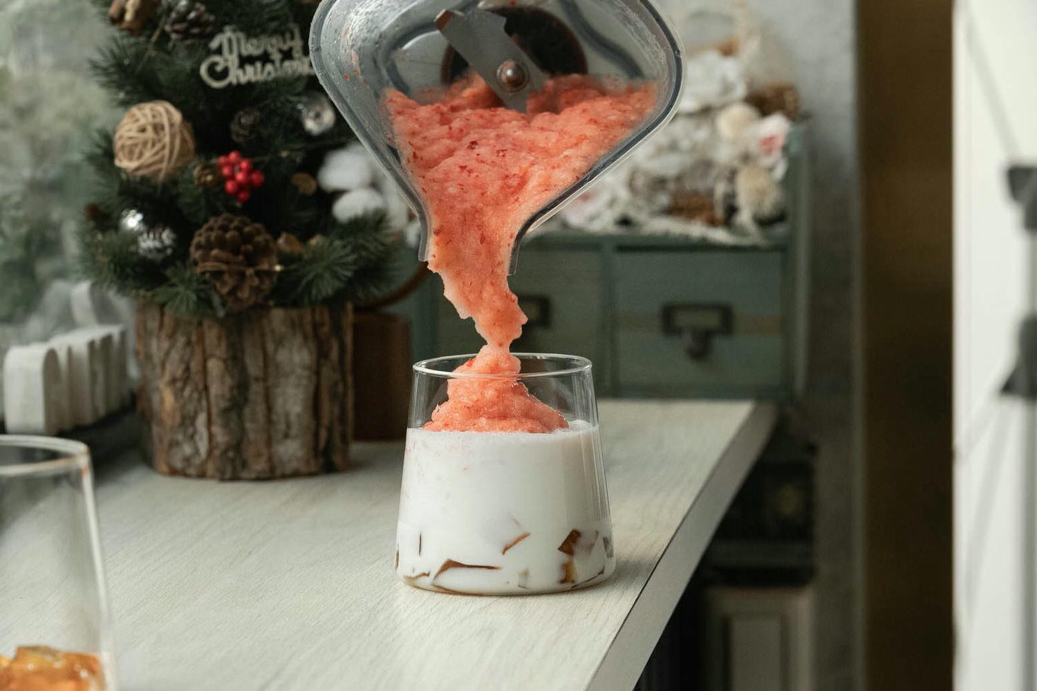 輕抿一口,沾附雙唇的塩雪奶蓋與草莓冰沙就是靈魂伴侶超合拍,