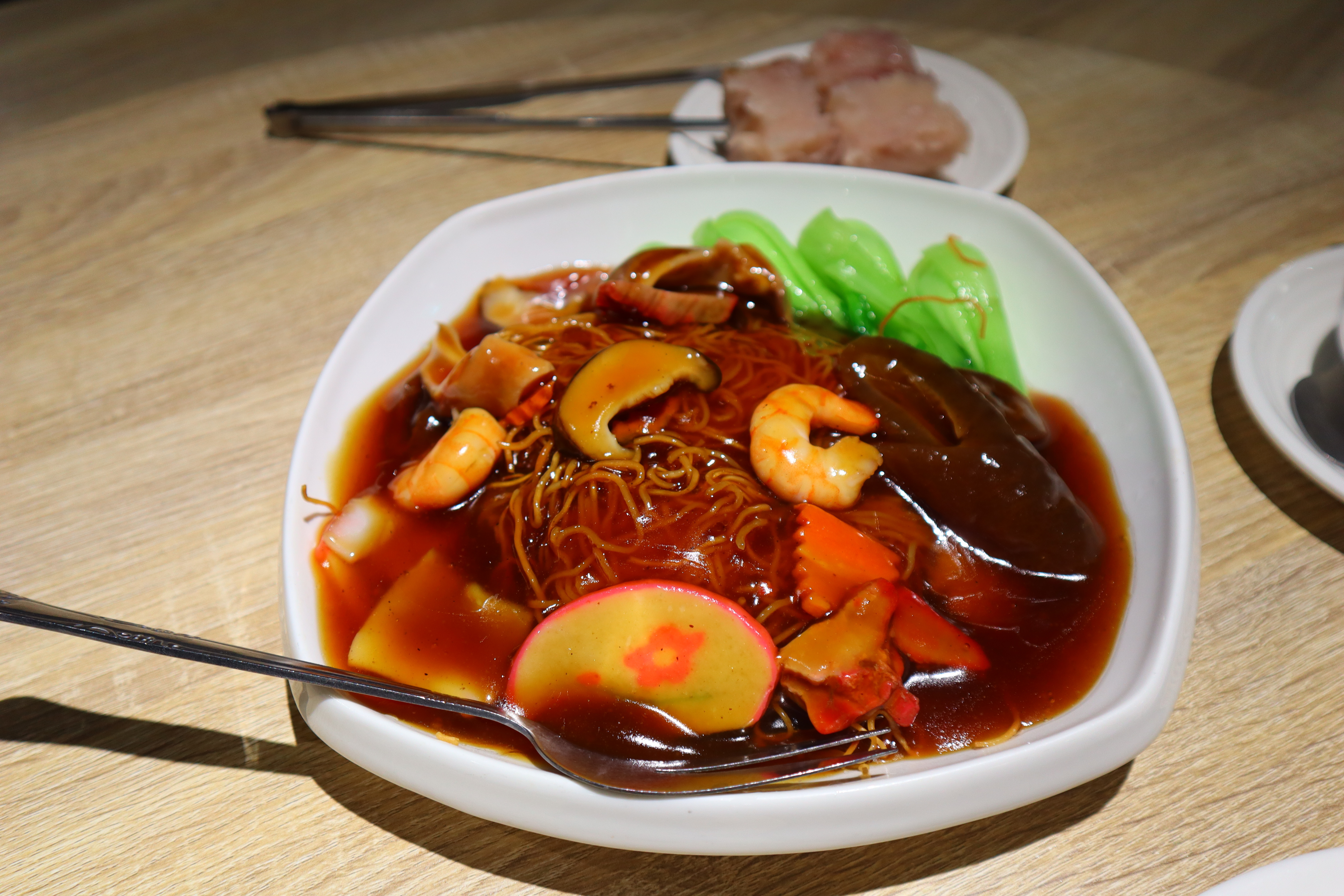 再搭配拌炒後勾芡的肉片、海鮮和蔬菜,整體口感脆中帶軟,層次豐富。
