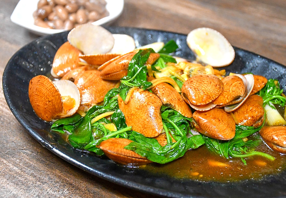 塔香海瓜子:九層塔香氣十足,海瓜子很有咬勁,但對我這個滿口牙套的人來說,咬起來偏硬了些