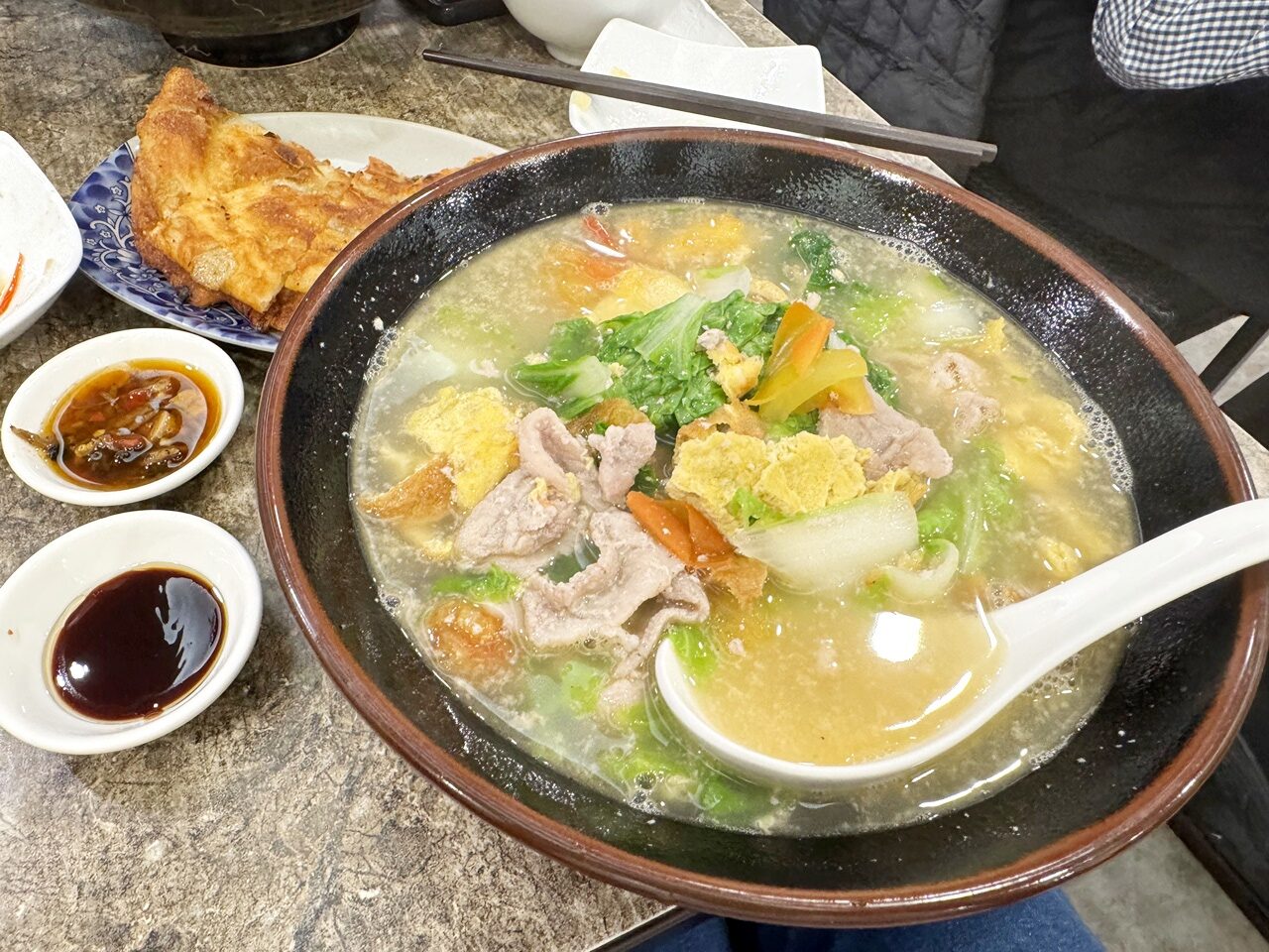 湯頭喝起來有一種大火快炒過的香味,再配上QQ的白麵條跟料,一口這樣根本超幸福,天冷吃起來很暖啊QQ