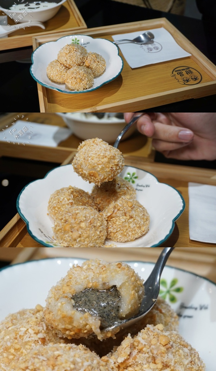 $100 這款手作小點心充滿了驚喜!Q彈軟糯的芝麻湯圓,外層均勻裹上香脆的花生碎粒和清甜的椰絲。咬下一口,首先感受到的是花生與椰絲帶來的酥脆與香氣,接著是湯圓的軟糯口感,最後是爆漿而出的濃郁芝麻內餡,多層次的口感讓人回味無窮,是暖心又邪惡的美味。